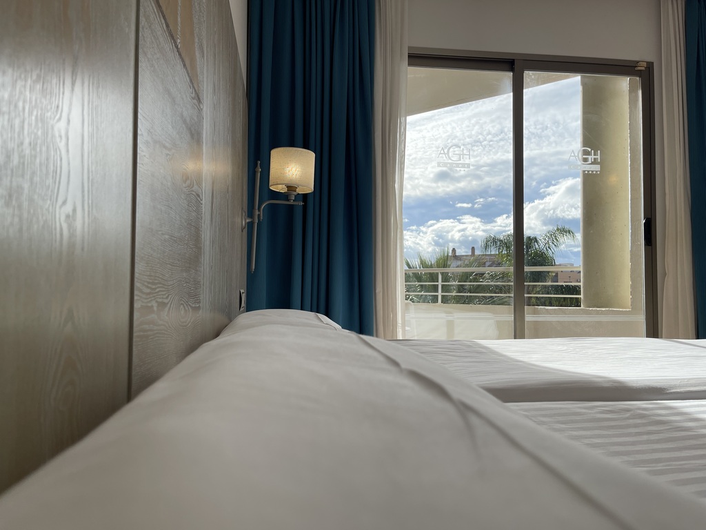 Disfruta desde la amplia terraza de la habitación de las magníficas vistas nuestros cuidados jardines, y en la mayoría, de vistas al mar. Nuestras amplias habitaciones de 30m2 están equipadas con todo lo que se espera de un hotel de 4*, terraza, minibar, caja fuerte, baños completos con ducha o bañera, y sofá cama de 1.20 ideal para parejas y familias. Un bebe menor de 2 años puede alojarse gratuitamente en cuna siempre bajo disponibilidad y bajo petición o compartiendo cama existente con los padres en la habitación, previo aviso al hotel.