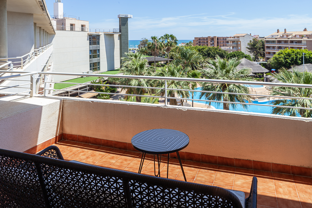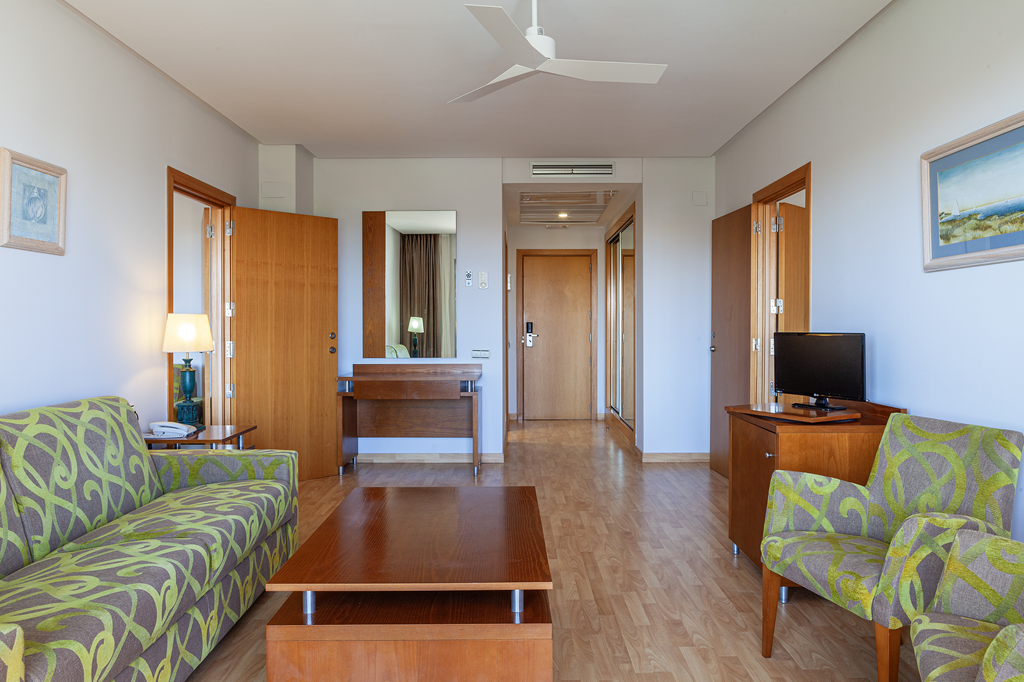 Nuestra Suite, con una superficie de 90m2, combina elegancia, comodidad y amplitud, es perfecta para familias. Desde la terraza puedes disfrutar de las magníficas vistas al jardín y al mar. Dispone de 2 habitaciones totalmente equipadas y un salón independiente. Cuenta con 3 baños completos totalmente equipados. Todas las estancias están comunicadas entre sí para crear un ambiente amplio y cómodo.